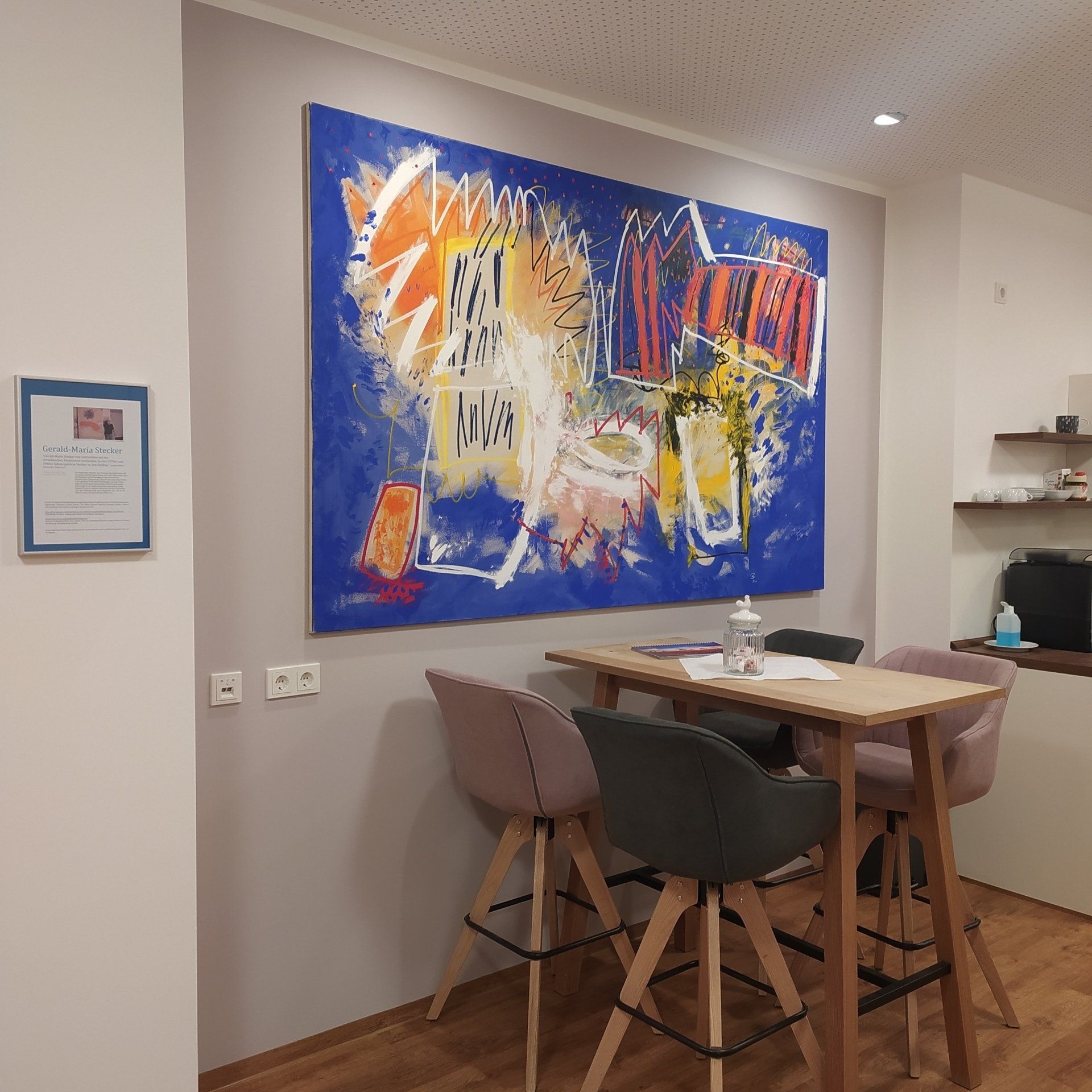 Was wir auf den Bildern Gerald-Maria Steckers in seiner letzten Schaffensphase sehen, sind abstrakte Wirklichkeiten, die aus der persönlichen Vorstellungswelt des Künstlers stammen. Es hätte keinen Sinn, diesen Wirklichkeiten Begriffe aus der gegenständlichen Welt hinzufügen zu wollen, weil es vom Künstler vollbewusst beabsichtigt war, solches nicht zu ermöglichen. Er wollte nicht, dass wir in diesen Farben und Formen Gegenstände unseres alltäglichen Lebens wieder erkennen, sondern er wollte uns dazu anleiten, rein geistige Wirklichkeiten als solche akzeptieren zu lernen.